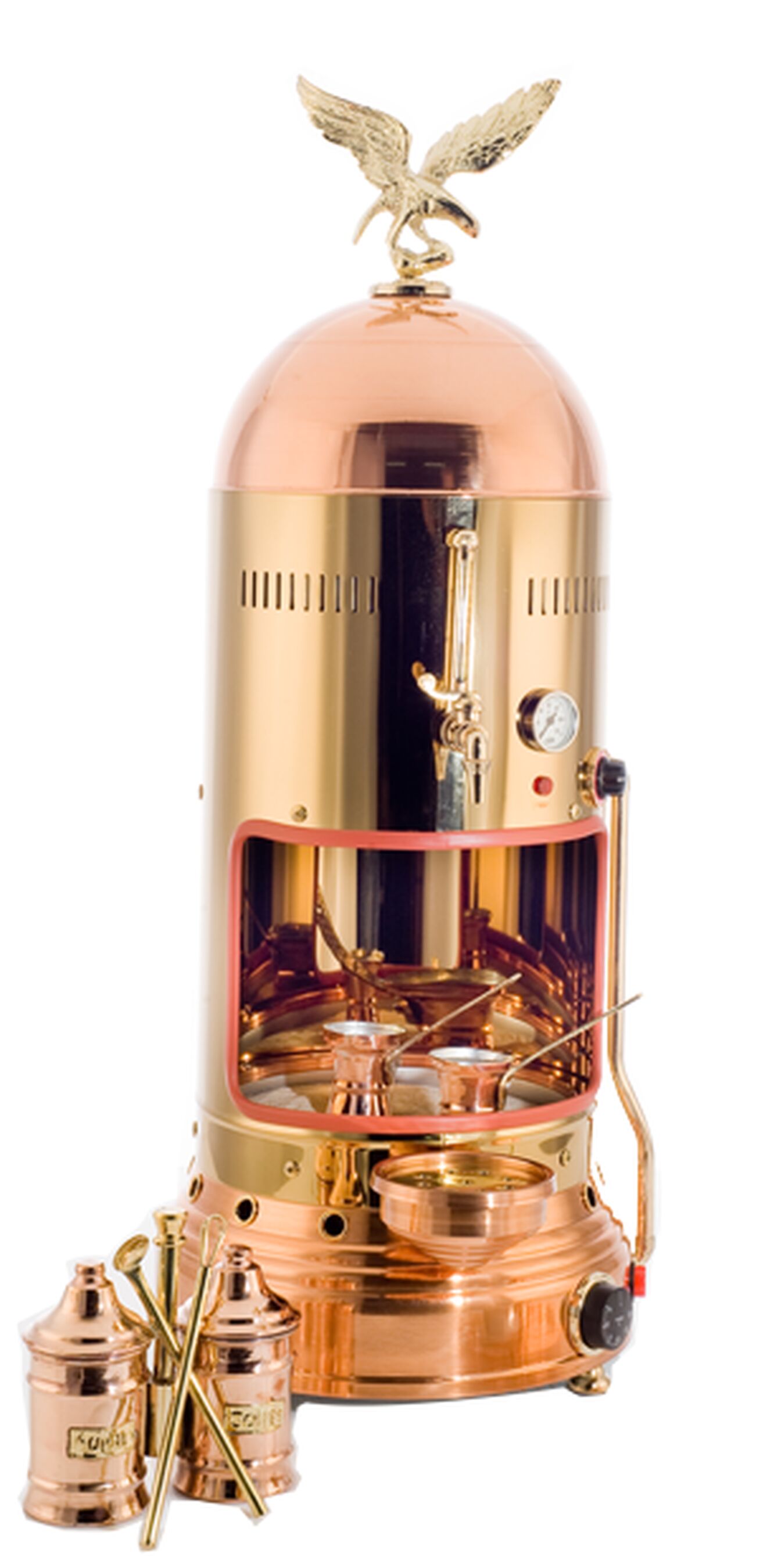 Traditioneel koffiezetapparaat voor het zetten van koffie in het zand ("hovoli"), voor professioneel gebruik. De "hovoli" machine past een traditionele techniek toe aan de behoeften van de moderne professional en biedt: